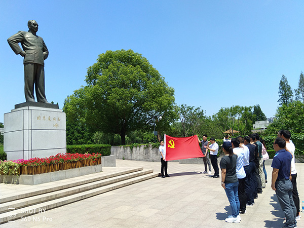 根据活动安排,两个支部20多名党员和入党积极分子共赴淮安参观周恩来纪念馆及周恩来故居,缅怀周恩来总理作为老一辈无产阶级革命家的丰功伟绩。尤开军副总经理带领全体党员在总理高大铜像面前,面对鲜红的党旗,重温入党誓词,解读了革命精神,增强了责任感、使命感和荣誉感。