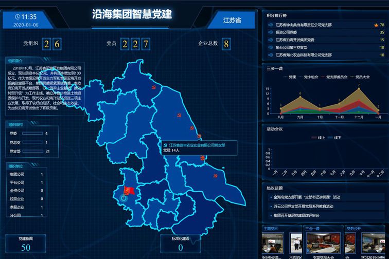 经过2个月的测试运行,集团公司智慧党建管理系统日前正式上线运行。智慧党建管理系统集党建宣传、党员教育、党务管理为一体,包括管理员后台、大数据可视化界面、党建微信公众号三个相互关联的平台。党员关注并绑定微信公众号即可参加所在党组织学习活动,实现了党员前端使用与管理员后端管理关联、党务工作线上线下联通。