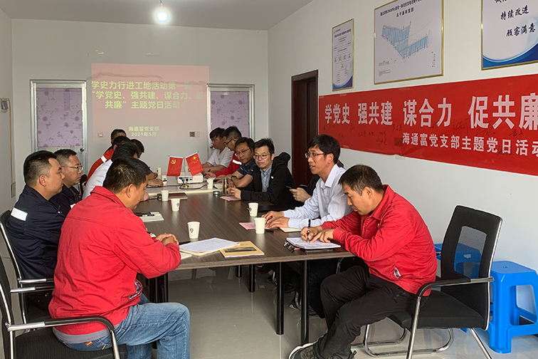 凝聚共识开新局。以共建为契机,着力打通党史学习教育“最后一公里”,真正让广大党员在项目一线“学思悟、开新局”。海通富公司党支部将联合共建支部开展“赓续红色精神,助力项目建设”等主题党日活动,聚焦施工进度、质量和安全开展劳动竞赛,在参建单位间营造“比、学、赶、帮、超”和争创一流的氛围,最大限度凝聚干事力量,激发项目攻坚活力,让党史学习教育成果转化为推动项目高质量建设的强大动力,成就优质示范工程。