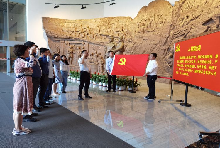 在黄桥战役纪念馆,全体党员在党旗前庄严地举起右拳,重温入党誓词,向党表示自己的坚定政治信念,深切感悟作为一个共产党人不能忘记的“初心”和必须牢记的“使命”。宣誓结束后,全体党员参观了纪念馆,观看历史图片、文物,一边细看文物史料,一边聆听讲解,学习黄桥战役的历史和精神。展馆内,每一张浸透着革命历史的老照片、每一幅真实场景的再现、每一段可歌可泣的红色故事,都震撼着在场党员同志的内心。