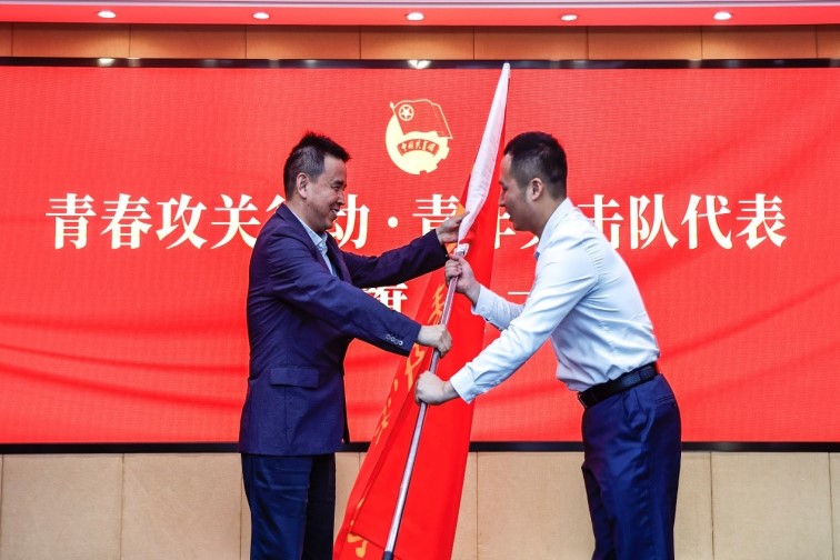 活动现场,汪帆代表青年突击队郑重接过集团党委书记、董事长许峰的授旗。