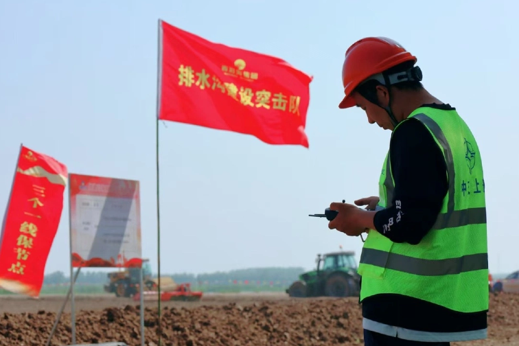多措并举,攻坚克难推进建设。围绕按期完成建设任务、实现新增耕地指标入库目标,公司党委制定专项行动方案,成立攻坚会战指挥部,统筹一线力量,以党员干部、业务骨干为核心,优化配置班组人员,组建党员先锋队、青年突击队,划定会战责任区。根据项目特点,针对性优化组织实施方案,增加资源投入,完善工作流程,明确攻坚节点。建设者们倒排工期、挂图作战,指挥部内插红旗、标进度,项目现场抢工期、赶进度。一面面小红旗“攻城拔寨”见证了项目建设“加速度”。