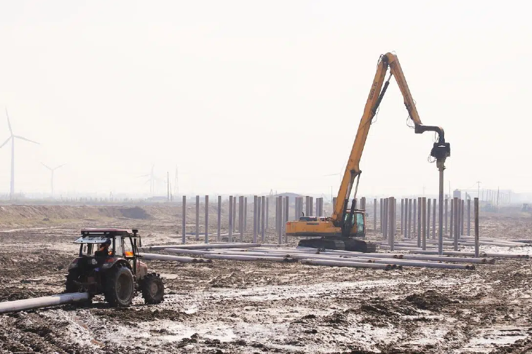 碳资产公司“新能”突击队7名队员分布在多个碳减排项目上,“从项目中来、到项目中去”是他们的工作常态。承载“零碳”愿景,深耕沪苏大丰产业园区绿色能源项目现场,承担规划设计、数据采集、联调联试等项目全周期建设工作,顺利保障项目实现全容量并网,促进项目入选2023江苏省“双化协同”典型案例。2名90后队员长期驻扎如东凌洋项目一线,一边克服住宿环境差的问题,一边坚持精益管理思维破解难题,面对项目工期短、供货协调难、雨季施工安全压力大等诸多不利因素,积极组织劳动竞赛、建样板工程,监督保障项目进程,目前已完成升压站围墙墙体砌筑、28000余根桩基施工等。