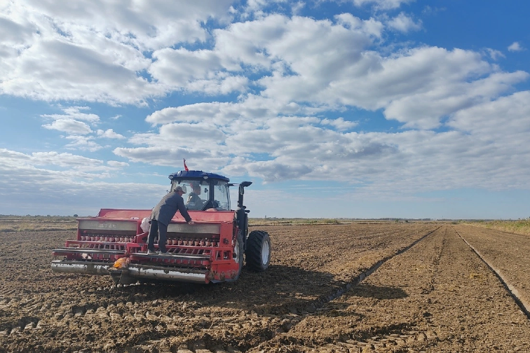 农发射阳分公司“优质稻麦”突击队面对连续不断的雨水天气,想法设法组合采用耕翻、晒田、3遍旋耕、正反旋播种的作业方式,克服黏土潮湿不易干的播种困难,“人停机不停”与时间赛跑,不分昼夜抢播小麦。4名突击队队员兼任大队长岗位,以“干”促学、以“干”促练培育技术骨干,通过协调农机、人员、物资等,严格把控生产流程,监督生产质量,确保每天播种进度按计划完成。