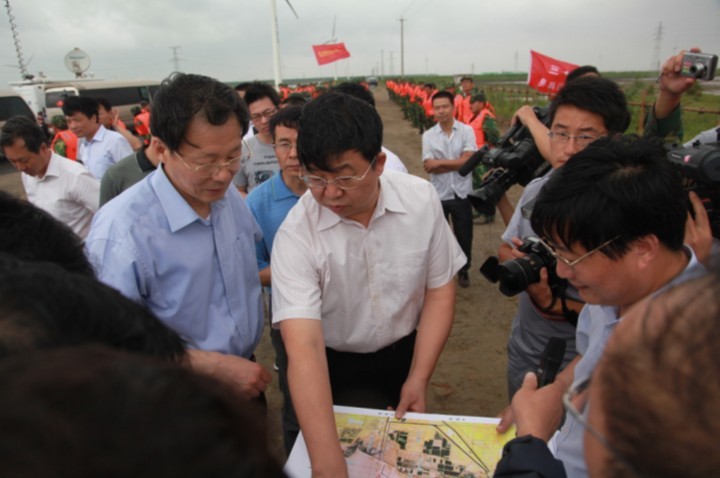 2011年8月7日下午,江苏省省长李学勇带领省有关部门视察东台条子泥围垦工程项目,省沿海办专职副主任、best365足球官网集团公司董事长梁学忠在项目现场汇报了条子泥围垦工作各项进展情况。李省长指出,东台沿海百万亩滩涂围垦是江苏best365足球官网的重点工程,要坚持科学施工、依法施工、和谐施工,积极创新体制机制,实现沿海地区可持续发展。