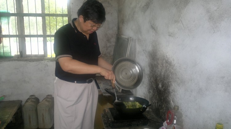 梁学忠董事长在农场职工厨房