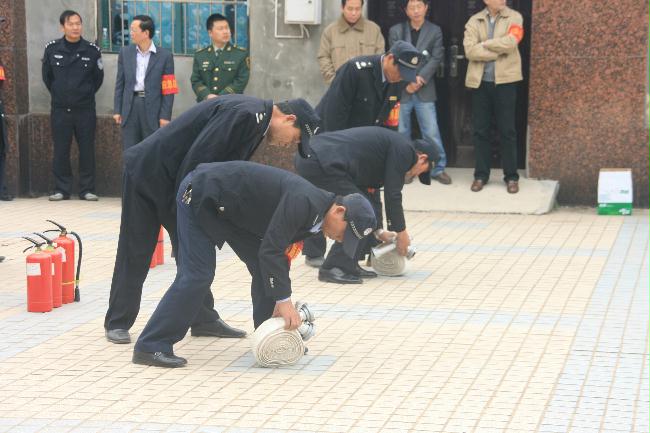 在活动中,南京恒久物业公司的保安队长首先为大家讲解了消防水龙带、灭火器的正确使用方法,随后组织队员进行训练演示。省糖烟酒总公司义务消防队员和全体员工认真观摩并亲自操作实践。近两个小时的训练结束后,大家普遍表示通过演练收获良多,不但学会了正确使用各种消防器材的方法,而且提高了事故现场的应急处置能力。