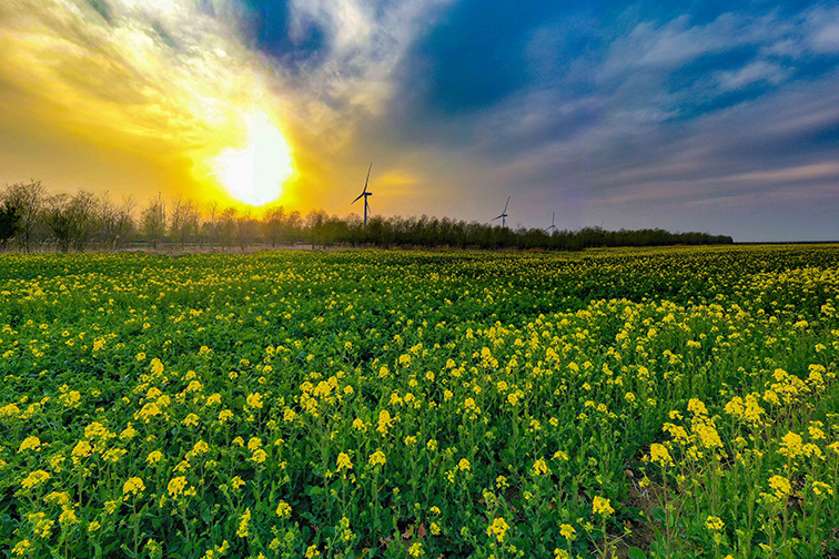 春分麦起身,一刻值千金。30公里之外的best365足球官网农发金东台分公司,也迎来了小麦拔节的季节。几场春雨过后,及膝高的麦苗厚厚地铺在田野上,引着清新的泥土气息,钻进了风里。恰是这一阵春风,吹开了千亩金黄。黄萼裳裳绿叶稠,一旁的油菜花田正衬着夕阳余晖,氤氲着春日里的热烈。