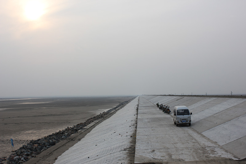 随后,梁董事长来到正在施工的条北片四标段现场,实地查看了4#隔堤及东堤施工断面。4#隔堤目前已施工至龙口位置,正在进行闭气土回填。梁董事长询问了龙口保护及合龙准备情况,对龙口保护措施的落实及施工方双棱体合龙的方案表示认可。在3.6万亩已实现合龙的片区,在听取施工单位中水十三局的汇报后,梁董事长要求争取四月初完成全部土方工程,六月初实现防护工程达到防汛断面标准。梁董事长指出,这一次工程安排在冬季开工,就是要抓住潮汛影响小的有利时机,既利于龙口合龙、又利于围堤稳定,还能很好地保障安全度汛,希望施工单位再接再厉,永不松懈,力争提前完成全部工程。