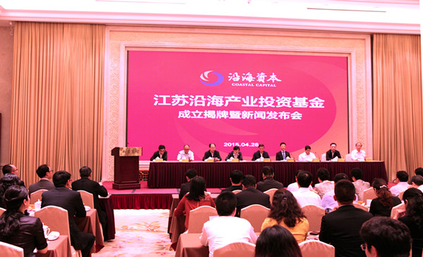4月28日上午,江苏沿海产业投资基金举行成立揭牌暨新闻发布会,沿海基金协调推进小组副组长徐立主持了揭牌仪式和新闻发布会,中国证监会江苏监管局局长王明伟、省科技厅厅长王秦、省地税局局长江建平、省金融办主任查斌仪以及省发改委、省财政厅、省经信委、省商务厅、省沿海办、省工商局和盐城市、南通市、连云港市、南京市建邺区领导出席了揭牌仪式。基金发起单位省best365足球官网集团总经理丁建奇、苏豪控股集团董事长王正喜、江苏高投集团董事长徐锦荣、平安信托江苏公司总经理陈刚参加了揭牌仪式和新闻发布会,并回答了记者的提问。
