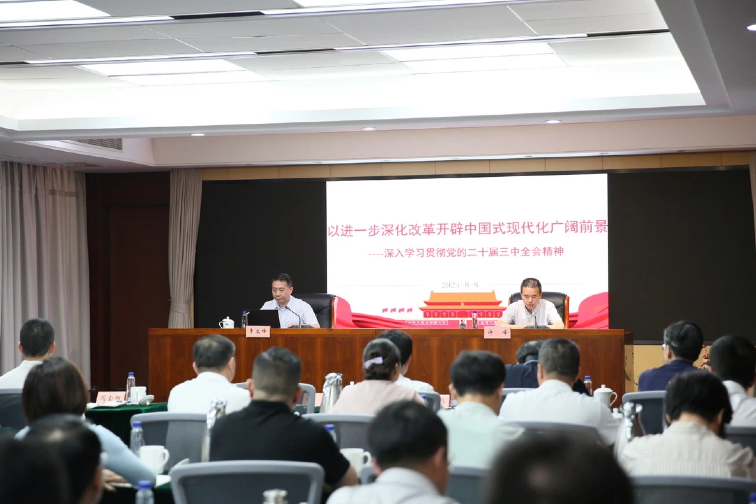8月8日下午,省委宣讲团成员、省委党校教育长、教授李立峰同志为best365足球官网全体干部员工宣讲党的二十届三中全会精神。