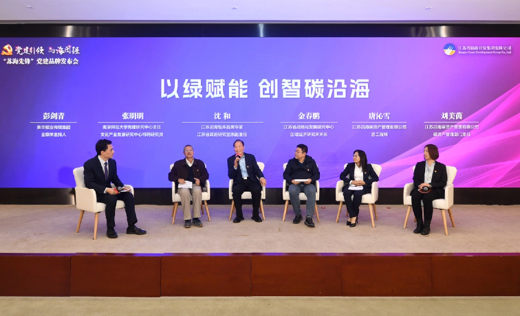 此次发布会还特别设置了圆桌对话环节,江苏省城市经济学会会长沈和、南京师范大学党建研究中心主任张明明、省战略与发展研究中心区域经济研究所所长金春鹏等五位来自政府、企业和科研机构的嘉宾围绕“以绿赋能 创智碳沿海”主题展开深入研讨。他们从不同角度探讨了省沿海地区如何更好地利用自身资源实现绿色动能的高效转化、如何构建绿色低碳的创新体系、如何平衡经济增长与生态环境保护的关系等问题。此次对话不仅深化了与会嘉宾对绿色低碳转型的认识,也为江苏沿海地区发展进行了有益探讨。