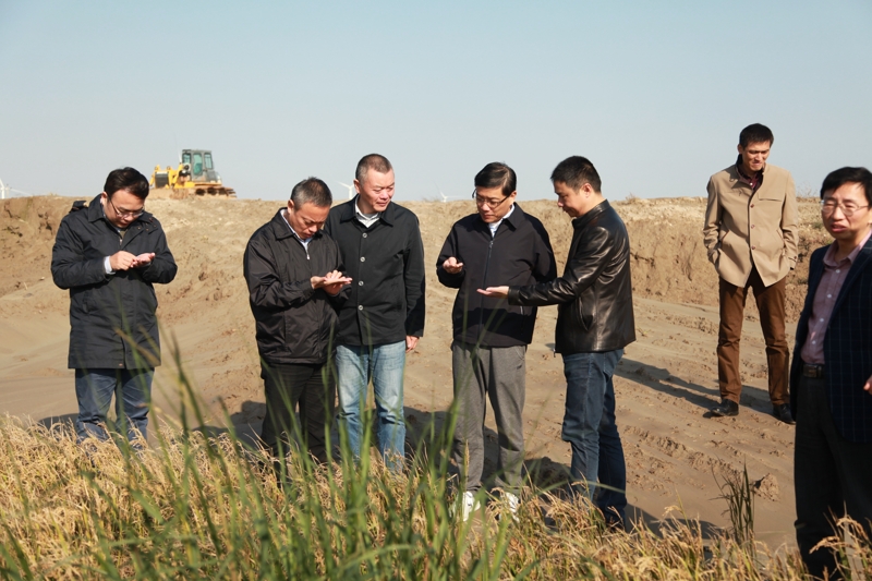 在东台条子泥垦区现场,邓董事长实地察看了湿地公园选址及规划设计情况,察看了条北农业种植区水稻生长情况。他要求,东台公司一要尽快按照海洋部门相关要求打造好集生态、经济及社会效益于一体的湿地公园;二要进一步做好未开发区域的土地整治及土壤改良工作,为全省耕地占补平衡发挥好储备作用。