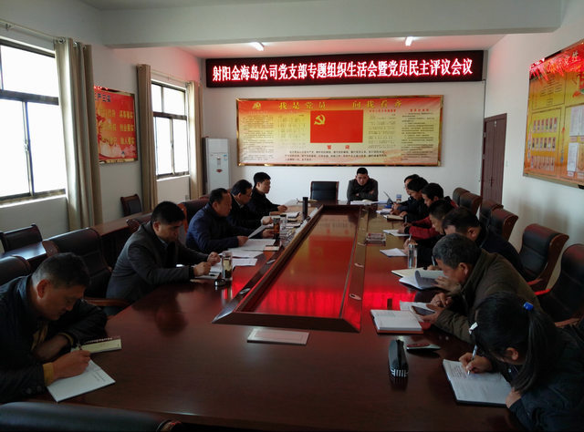 3月16日,射阳金海岛经济开发有限公司党支部召开专题组织生活会和开展民主评议党员。集团公司党委副书记、总经理丁建奇代表集团党委全程参加会议并进行点评。金海岛公司支部全体党员参会,支部书记薛太华主持会议。
