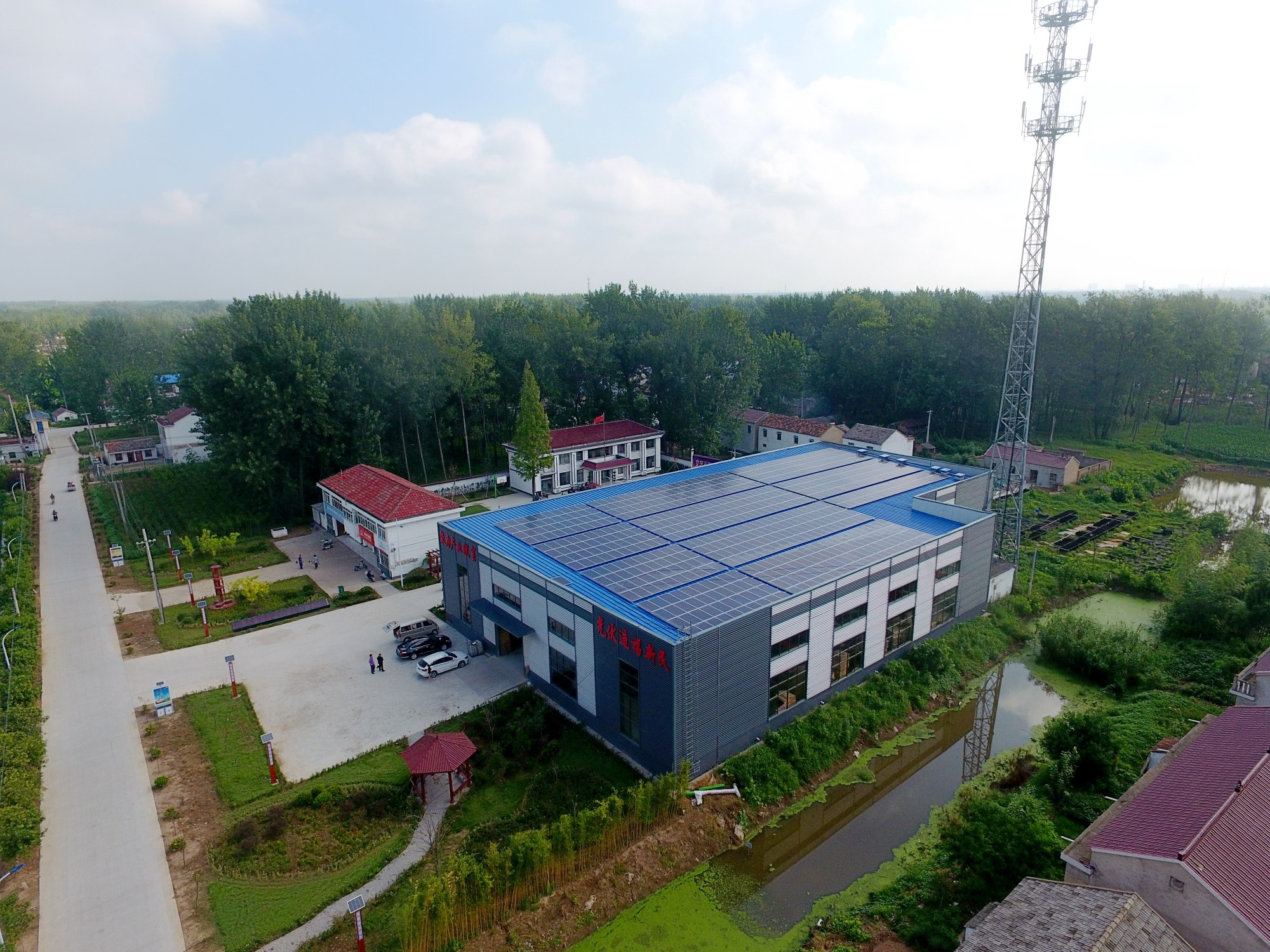 集团公司注重发挥企业沿海特色产业和现代农业优势,大力实施产业扶贫、项目扶贫,增强村集体“造血”功能。集团领导先后8次来到新民村调研指导、察民情、出思路、解难题、送温暖,研究制定帮扶方案,强化产业支撑,5个高质量扶贫项目陆续建成投入运行。投资85万元建成2000㎡标准化厂房,每年为集体创收8万元,吸纳村低收入户就业25人;投资144万元建设了177KW的光伏发电项目,年发电量22万度,每年电费收益17.6万元;为低保户安装光伏发电设备,每户每年收益可达4000元;投资90万元建成1000㎡粮食仓储烘干中心,流转850亩耕地兴办村集体合作农场,成立海润谷物种植合作社,探索“稻-渔-果”立体复合种养模式,参与农户人均增收3000元。
