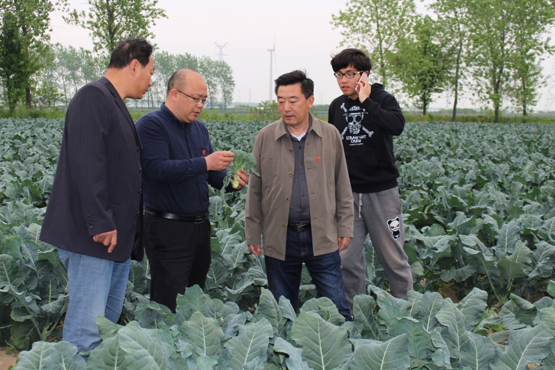 (凌洋公司支委在蔬菜基地研究工作)