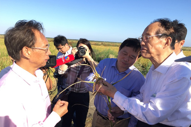 条子泥垦区是2009年我省best365足球官网上升为国家战略后进行匡围的重点工程,于2014年完工,随即进行开发配套建设,于去年基本完成。据介绍,条子泥条北垦区首次大面积种植7230亩水稻,是由沿海集团下属江苏省best365足球官网(东台)公司和盐城师范学院江苏滩涂生物农业协同创新中心、江苏省盐土生物资源研究重点实验室、南京北盛荣能源科技有限公司共同开发。与以往盐碱地改良先养七八年鱼,再进行水稻种植不同,这片处女地头年直接播种水稻。眼下开镰在即,盐城市农科院技术人员对其中18个田块进行测产,理论亩产523.3公斤,其中408号田理论单产高达737.5公斤,达到每公顷10.5吨的“超高产”指标。以凌启鸿为主任委员的专家组对水稻进行测产核验,认为“数据与所在田水稻实际情况甚为符合”。