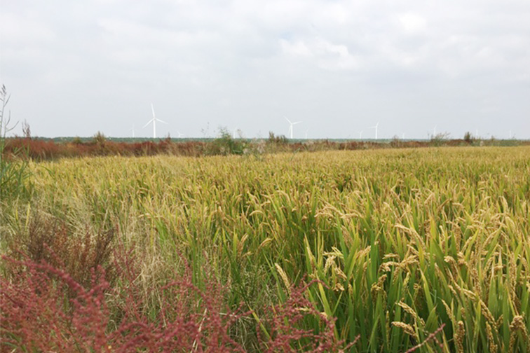 在不毛之地种稻,还要稳夺高产,唯有技术创新。负责项目技术的盐城师范学院兼职教授、盐碱地改良专家、研究员茆训东说:“我们摸索出‘5N’快速高效脱盐法’‘三干法夺三苗’以及咸水灌溉等关键技术,克服难题。4月1日开始土壤改良作业,到5月20日播种插秧时,耕层含盐量总体已降至3‰以下。”与此同时,在插秧之前,每亩施用了5吨含盐量低的牛粪,改善了土壤结构,增加了有机质。以深耕、勤灌、多旋来“改土”,用良种、密植、足肥促丰产,一系列综合配套措施让滩涂当年就成为“米粮仓”。