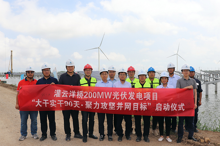 近日,灌云洋桥200MW渔光一体光伏发电平价上网项目现场气氛热烈,海通富公司会同管理中心及2个标段的总承办单位举行了“奋战90天,拼搏930”攻坚活动启动仪式。投资公司党委书记、董事长胡国平参加活动。