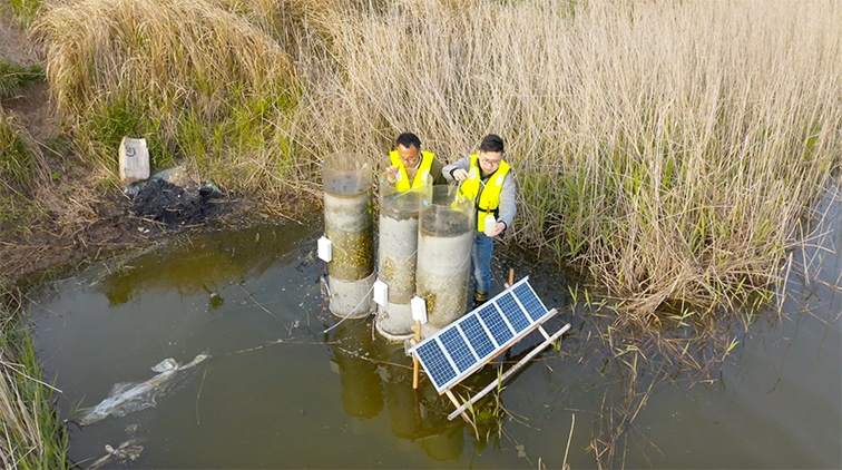 采集样品是个辛苦活,72个采样点覆盖近3万亩养殖水面和净化河道,每口露天池塘就平均180亩,且实验周期覆盖春夏秋冬,盛夏曝晒、寒风扑面都必须要坚持。历经数百个昼夜的执着追寻,队员们在调查研究完条子泥垦区近3万亩条南养殖区和净化区水环境情况后,摸清了沿海垦区养殖水中污染物的分布与迁移情况,并分别从养殖源头到末梢寻找到养殖尾水达标排放方法。