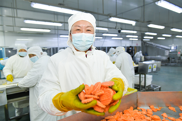 随着中央厨房、连锁餐饮、外卖平台等餐饮服务新业态的兴起以及冷链运输网络的完善,为果蔬速冻加工产业发展带来机遇。在如东,所属耕洋公司作为特色果蔬深加工企业,2022年底,拥有了年规模4.5万吨的冷冻果蔬加工、仓储优质资产,完善了果蔬种植、加工和销售的产业链。新年开工,生产车间设备进行全方位清扫和检修提前准备到位,生产线上轻快跳跃着西兰花、毛豆荚、胡萝卜等速冻净菜,这些蔬菜打包过后供应国内外市场,让沿海味道走向更远地方。