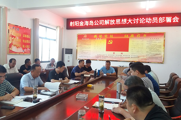 近日,金海岛公司召开解放思想大讨论动员部署会。公司全体员工参加会议,公司党支部书记、经理薛太华作开展解放思想大讨论动员讲话,公司副经理陆中阳主持会议。