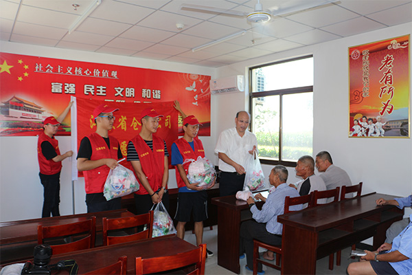 为进一步继承和发扬“关爱老人”的优良传统,江苏省仓东农业发展有限公司青年志愿者服务队一行12人于8月9日上午,带着夏凉慰问品来到弶港镇敬老院开展“夏日送清凉”志愿活动。