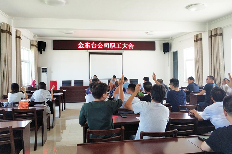 为确保金东台公司工会规范有效运行,努力将金东台公司工会建设成为有依法选举的工会主席、有独立健全的组织机构、有服务职工的活动载体、有健全完善的制度机制、有自主管理的工会经费、有职工满意的工作绩效的“六有工会”,8月13日上午,金东台公司召开职工大会进行工会主席的补选工作,公司党支部书记、执行董事戴成中主持会议。