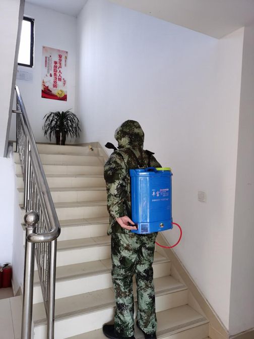 前线有青年员工的身影,“后方”也如此。凌洋公司需进行全面消毒,也是青年员工主动承担起艰苦的工作,身穿“隔离服”,后背大药筒,看似笨重,却成了全场最“帅”的那一个: