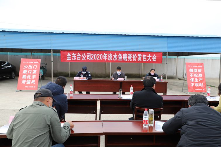 3月3日,金东台公司在公司广场召开了淡水鱼塘发包大会。大会防疫措施完备,现场秩序良好,流程规范透明,4443.15亩淡水鱼塘共计18个标段全部顺利发包,实现收入315万余元。