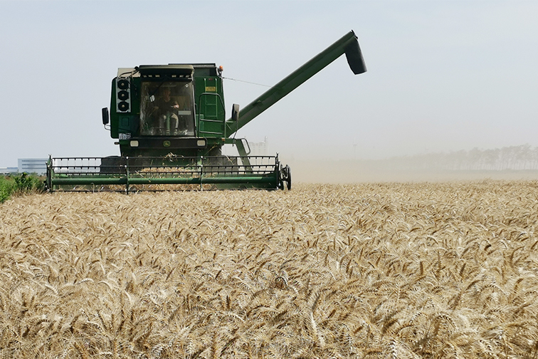 金穗卷起千层浪,又是一年农忙时。放眼望去,联合收割机来回穿梭于自营小麦田,一束束麦穗瞬间变成一颗颗饱满的麦粒,随风跳跃。农机逐浪,颗粒归仓,仓东公司自营小麦喜获丰收。