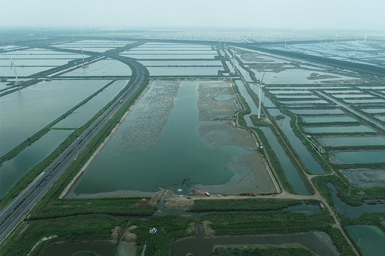 项目采用“总体规划、分期实施”方式,由土地公司、仓东公司、咨询公司、科技公司共同组织实施,计划于2022年、2023年分两期完成。一期项目总面积7000亩,整治面积5700亩,现状为盐碱地,是集团通过沿海滩涂围垦形成,目前通过鱼塘养殖进行保水压盐。土地公司组织科技公司进场后通过土地平整,实施灌溉排水、田间道路、农田防护工程,经过对现状土壤改良和地力提升后,可形成高质量农田4500亩,预计年新增粮食产能5000吨,为集团现代农业板块发展提供坚实支撑,并为全省发展提供补充耕地储备。
