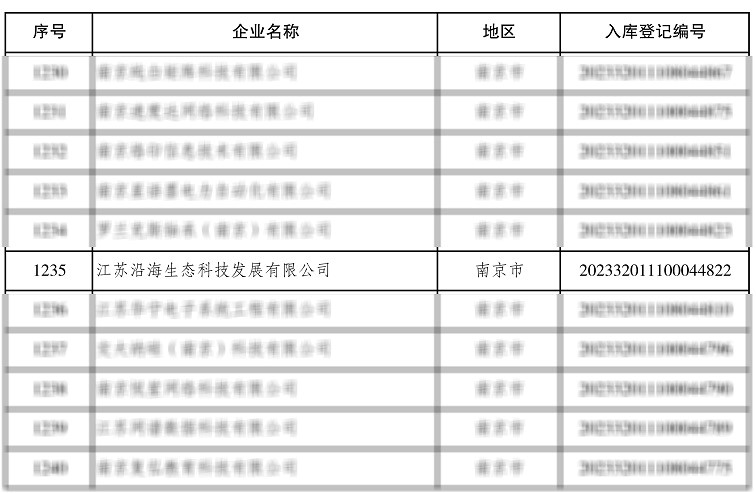近日,江苏省科技厅公布了江苏省2023年第三批入库科技型中小企业名单(苏科高函〔2023〕199号),江苏沿海生态科技发展有限公司(以下简称“科技公司”)成功入选。