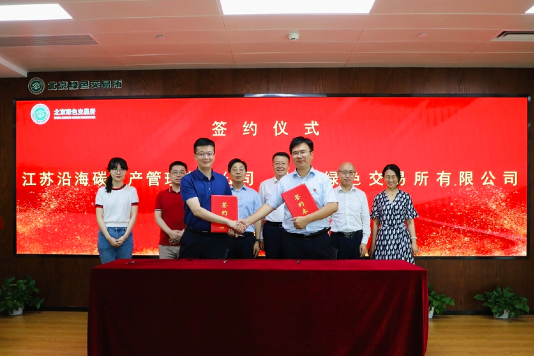 7月12日上午,江苏沿海碳资产管理有限公司(以下简称“江苏沿海碳资产”) 与北京绿色交易所有限公司(以下简称“绿色交易所”)签署战略合作协议。江苏省best365足球官网集团副总经理、党委委员胡国平,绿色交易所董事长王乃祥等领导出席签约仪式。