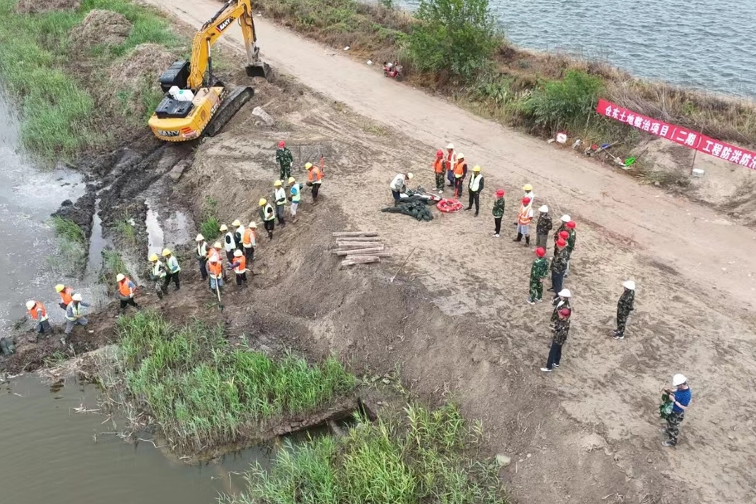 金湖项目公司及仓东代建部组织开展防洪度汛应急演练,就雨中风险点巡查,事故应急抢险,雨后巡查堤坡稳定等事项进行演练,同时针对降雨后可能出现的田块内秧苗泡水、路基浸水等情况,制定好“沟涵自排+备用水泵强排”方式排涝方案,守护项目建设成果。